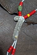 プレーン金メタルフェザー、メディスンホイール、天然ターコイズ、ホワイトハーツ7oを用いて組み上げました。