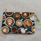 コーヒー♪カプチーノ柄、通帳サイズ、化粧ポーチに