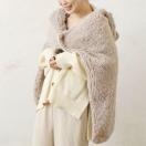 使い方5通り!クッション、ひざ掛け、腰巻きスカート、ボレロ、ポンチョになるもこもこケットです。