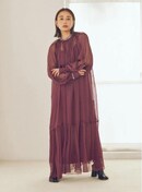 繊細さを醸し出すシアー素材にギャザーやプリーツ加工を施した贅沢なロングワンピース。