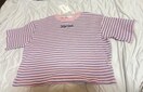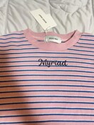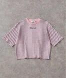 ピンクボーダーTシャツ、Myriad刺繍入りでカジュアルに最適。