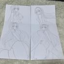 ラフ画から清書に移行前の最終段階で没にしたシャーペン画の為、修正の為の消しゴム跡やヨレ、消した際の汚れ等有り。雰囲気を楽しんでいただける方向けとなります。