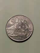 1977年のニュージーランドの50セント硬貨です、直径約31ミリ、白銅貨幣です、1枚限りです。図柄はエンデバー号とティアラのエリザベス女王締切日時