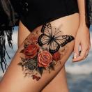 防水一時的なタトゥーステッカー、腕、胸、腹部、背中、脚用の3Dマルチカラーローズとバタフライデザイン - Lサイズ、パーティーギフト、長方形 STARTTOOS製