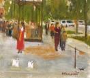 抽象表現主義から具象画に転向して久しく、身近な街景、ア−バンライフを主題に明快な筆致で描いております。モバオクで "袖振り合うも多生の縁" 宜しくお願い致します。