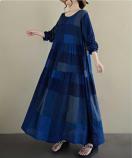 チェック柄ロング丈ワンピース