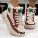 レディース チャンキープラットフォームアンクルブーツ - 冬用暖かいフリース裏地のローヒールレースアップブーツ、厚手のラバーソール、ラウンドトゥPUカバー&ファブリックアッパー、カジュアルな服装に最適、日常快適シューズ、おしゃれなレースアップシューズ、耐久性のあるトラクションシューズ、寒い天候用靴、快適な裏地、都市スタイル