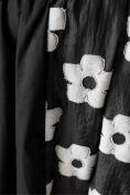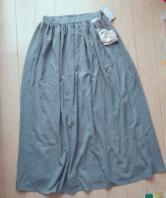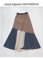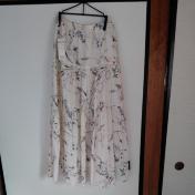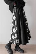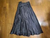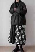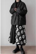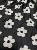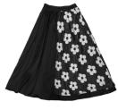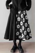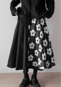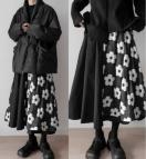 ロング丈 裏地付き フレア スカート 花柄切り替え ブラック 大きいサイズ