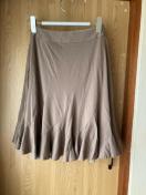 柔らかい、とろみ生地でスカートの作りは細身ですが裾部分に立体感あり、歩きに合わせて揺れる感じが女らしく、色味はベージュほど薄くなく、ブラウンほど濃くないので主観ですが良い色かと思います。