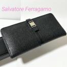 美品 Salvatore Ferragamo フェラガモ レザー 二つ折り 長財布 シルバー金具