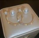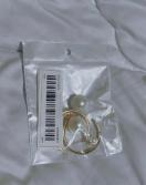 ゴールドのハーフフープに大きいパールが可愛いピアスです。