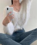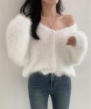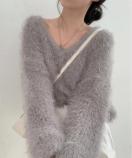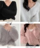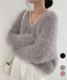 毛足の長いふわっとしたニット素材は肌触りが柔らかく、レトロでフェミニンな雰囲気を演出します