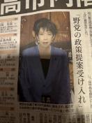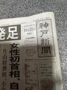 高市早苗女性初の総大臣に任命の新聞 2025年 10月 22日 神戸新聞 ! 。