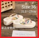 新品未使用 軽量 厚底トングサンダル 36 Sサイズ 花柄 ビーチサンダル アイランドスリッパ ベージュ 送料無料