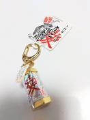 こちらの商品は、新潟限定の上杉軍 軍師 直江兼続の金色おみくじ付きキーホルダーです。