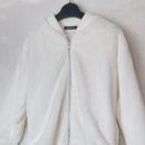 柔らかいフェイクファー素材のホワイトフルジップジャケット。