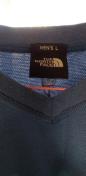 Vネックのストライプデザイン、青色のTHE NORTH FACEベスト。