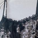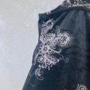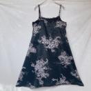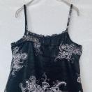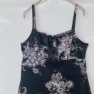 柔らかいベロア生地の黒い花柄キャミワンピース。