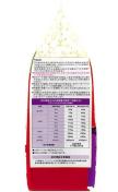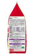●原材料:穀類(コーンフラワー、小麦粉、小麦ブラン、コーングルテンミール、ライスブラン)、肉類(チキンミール、チキンレバーパウダー)、油脂類(動物性油脂、植物性油脂(オメガ‐6脂肪酸含む)、共役リノール酸)、魚介類(フィッシュエキスパウダー、マリンコラーゲン、小魚粉末(DHA、EPA/オメガ‐3脂肪酸源))、ビール酵母(β‐グルカン源)、コエンザイムQ10、糖類(オリゴ糖、エリスリトール)、カゼインホスホペプチド、果実類(クランベリーパウダー、ブルーベリーパウダー(アントシアニン源))、トマト(リコピン源)、L‐カルニチン、ミネラル類(カルシウム、リン、カリウム、クロライド、鉄、銅、マンガン、グルコン酸亜鉛、硫酸亜鉛、ヨウ素、コバルト)、ビタミン類(A、B2、B6、B12、D、E、パントテン酸、コリン)、酸化防止剤(ミックストコフェロール、ローズマリー抽出物)、バチルスサブチルス(活性菌)、アミノ酸類(アルギニン、タウリン、メチオニン)、グルコサミン、コンドロイチン、ヒアルロン酸