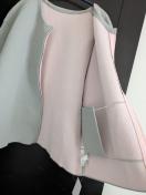 表と裏の2層構造デザインで、フロント部分にジッパーのタイプで羽織りやすく、気温やスタイリングに応じて調整可能です。