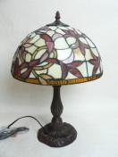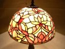 クラシカルな支柱とステンドグラスの鮮やかな模様が美しいテーブルランプ。
