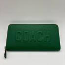 ★新作人気モデル グリーンカラーにCOACHロゴが刻印されたオシャレな重厚感のある長財布です。