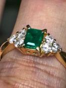 K18☆エメラルド044★D0272☆貴賓高い綺麗なエメさんダイヤのリング