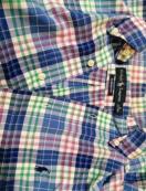 品薄★素敵★特価未使用に近いラルフローレンシャツチェックブルー系ワイシャツ半袖刺繍ロゴ大活躍好感度アップ清楚カットソー Tシャツ