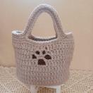 ★ベージュ色のアクリル毛糸で編んだ、ミニサイズのトートバッグです。