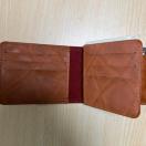 茶色の2つ折り財布には、カード入れ9個PASMO等を入れられる透明なケース付き。小銭入れが残念ながら付いておりません。