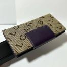 美品 BVLGARI ブルガリ ロゴマニア キャンバス レザー 二つ折り 長財布 ベージュ パープル