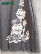左前にアジアンなロータスの抜染プリント入りののロングスカートです。