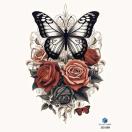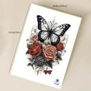 防水一時的なタトゥーステッカー、腕、胸、腹部、背中、脚用の3Dマルチカラーローズとバタフライデザイン - Lサイズ、パーティーギフト、長方形 STARTTOOS製