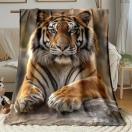 虎の寝たふりブランケット - 軽量フランネルスロー、リアルなライオン柄、ソフトで暖かいオールシーズン対応の心地よいブランケット、ソファ、キャンプ、ベッド、オフィスに、ブラウン - 動物好きへの理想的なギフト、ぬいぐるみのような質感、多用途カバー、ホームデコレーターに