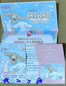 ロッテ 雪見だいふく シナモロール ぷにぷにキャンペーン オリジナルQuoカード1000円分 当選非売品 新品 台紙、当選通知、応募ハガキの片側切れ目あり付き