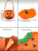 不織布製のパンプキンコスチューム、ジャック・オー・ランタンデザイン、バケツ付き。