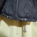 フード付きの黒いカジュアルジャケット、裾にドローコード付き。