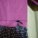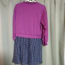 紫のスウェットと黒のドットスカートのコンビネーションワンピース、サイズ160。