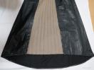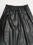 合成皮革とチェック柄の切り替えデザインのロングスカート。