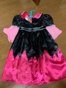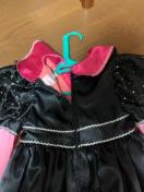 サテン素材の黒とピンクの姫系コスプレ衣装、ビーズと刺繍のディテール付き。