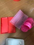 MARVELロゴの赤い筆箱とイラスト入りのピンクの筆箱、シルバーのYESロゴ財布のセットです。