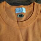 鮮やかなオレンジ色のМサイズTシャツ、シンプルで使いやすいデザイン。
