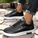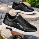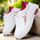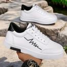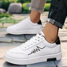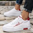 メンズカジュアルスニーカー - スタイリッシュな赤いアクセントが特徴の多用途ランニング&スケートシューズ、ロートップレースアップ、快適なファブリックライニング、耐久性のあるPVCソール、カジュアルなアウターに最適、オールシーズンシューズ | トレンディなカジュアルシューズ | ソリッドカラーデザイン