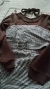 ブラウン色ニットと 格子柄