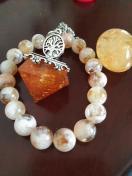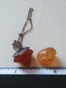 シトリンタンブルと、こちらのオークションで購入したペンジュラムと、シトリン?のブレスレットのセット。ペンジュラムはわっかにするとバッグチャーム風に使えます。(レジンか何かでできてます)少し飾って眺めていたので神経質な方はご遠慮ください☆