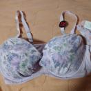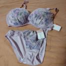 薄紫色の花柄レースデザイン、Lサイズのブラジャーとショーツのセット。