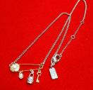 安全ピンモチーフに揺れるミニチャームが可愛い、コーチのネックレスです。