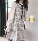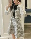 上下が分かれているように見えるデザインなので、寒い時期にカーディガンやプルオーバーなどを重ねても、すっきりと着て頂けます。
