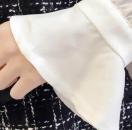 ホワイトのブラウスの部分は、袖口と襟元をフリルにしガーリーな雰囲気に。