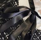 ブラックにホワイトの糸が織り込まれたきれいめのツイード生地を使用しています。